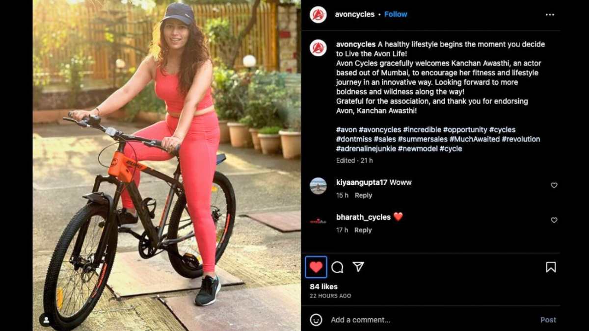 Avon Cycles, a renowned name in the bicycle industry, has chosen Kanchan Awasthi to be the face of their brand. With her captivating performances in television shows and films, Kanchan has garnered a loyal fan base that resonates with her versatility and charm.